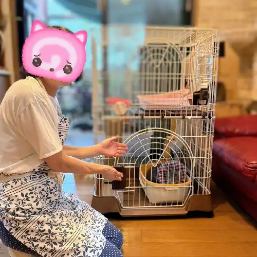 ケージに入ってもらっていましたが、今は4畳半一間をフリーにしています。