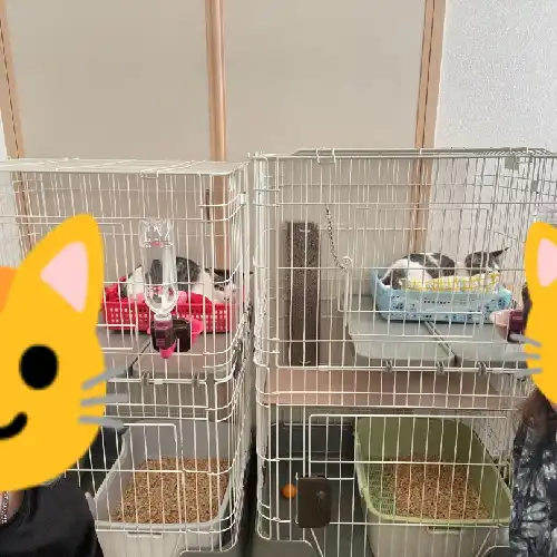 先住の9歳お姉ちゃん猫2匹(むっちゃん・まほちゃん(元いすずちゃんです))が警戒モードだし、